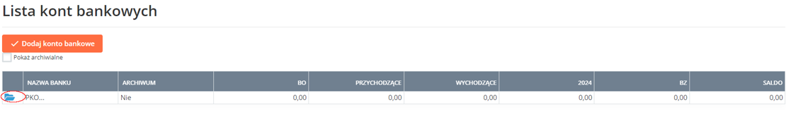 Nazwę banku, klikamyDodaj konto bankowei widzimy na liście - dodany Bank.