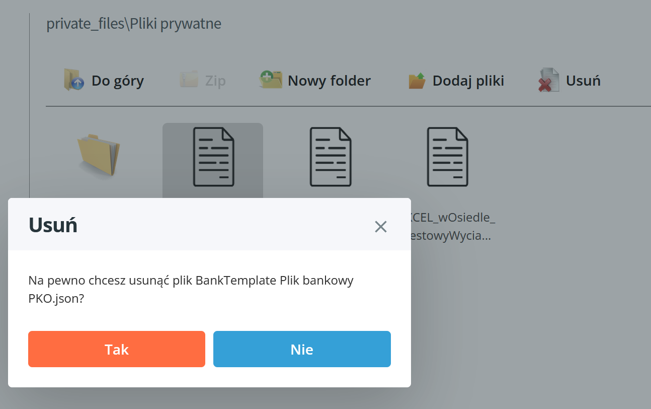 Uwaga! Plik usunięty znika całkowicie z wOsiedle. Jeśli usunięcie było pomyłką, trzeba plik ponownie wgrać z własnego komputera.