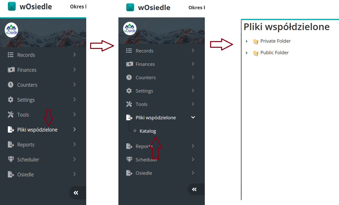 Kategoria Pliki współdzielone to miejsce, w którym można trzymać pliki potrzebne do rozliczania osiedla.