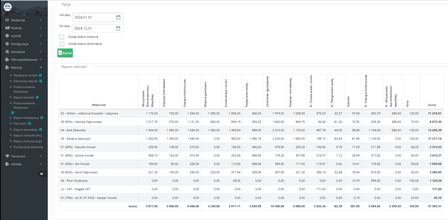Bardzo przydatna funkcja to ustawienie w "Opcjach" daty, która umożliwia wyfiltrowania dany okres np. naliczenia w miesiącu maju.