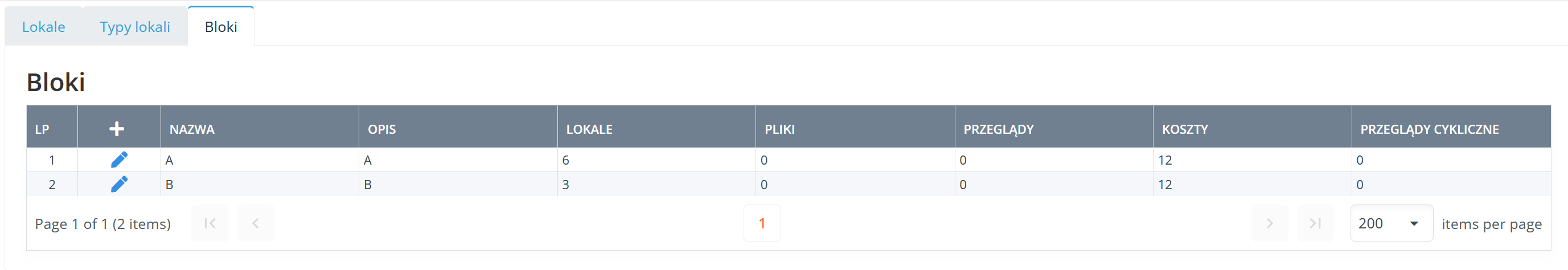 W zakładce Bloki mamy zebrane informacje na temat bloków znajdujących się w naszym osiedlu.