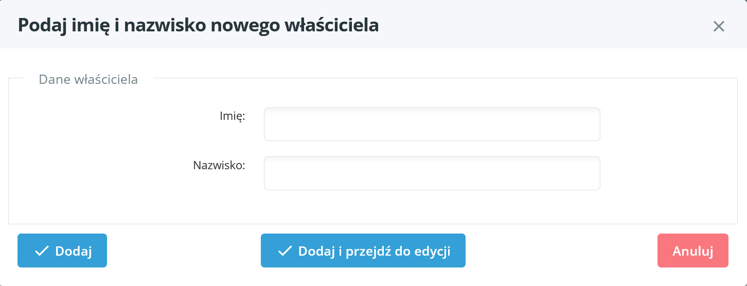 Wpisujemy Imię, Nazwisko -> klikamy na Dodaj lub Dodaj i przejdź do edycji. Ten drugi przycisk poprowadzi nas automatycznie do konfiguracji danych Właściciela.