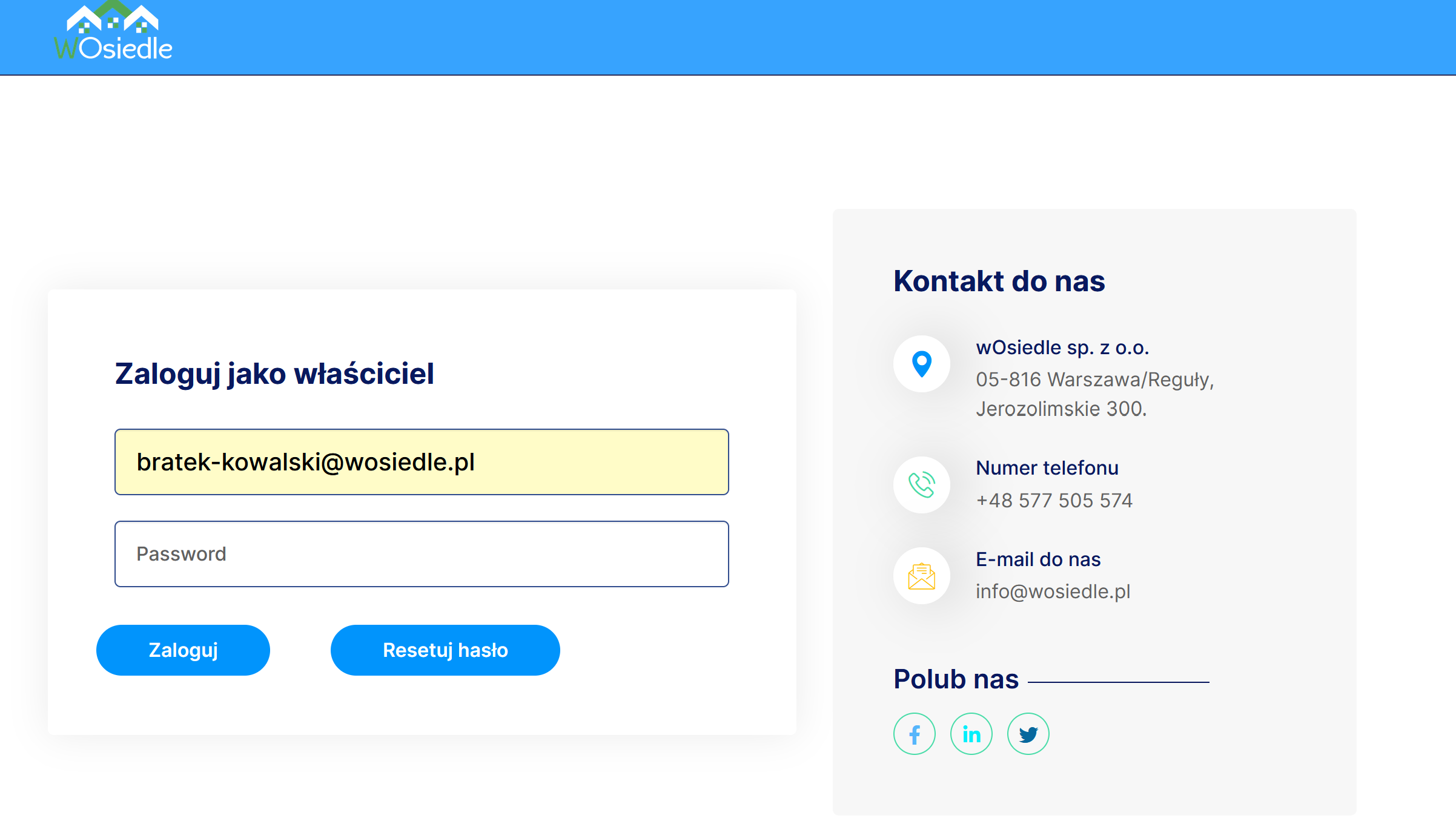 Ale również właściciele mogą zalogować się na swoje konto (https://owner.wosiedle.pl/Account/Login?ReturnUrl=%2F).