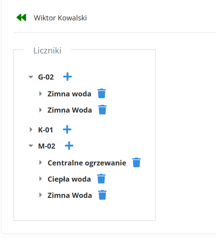 W tej zakładce mamy możliwość podglądu liczników podpiętych pod danego Właściciela.