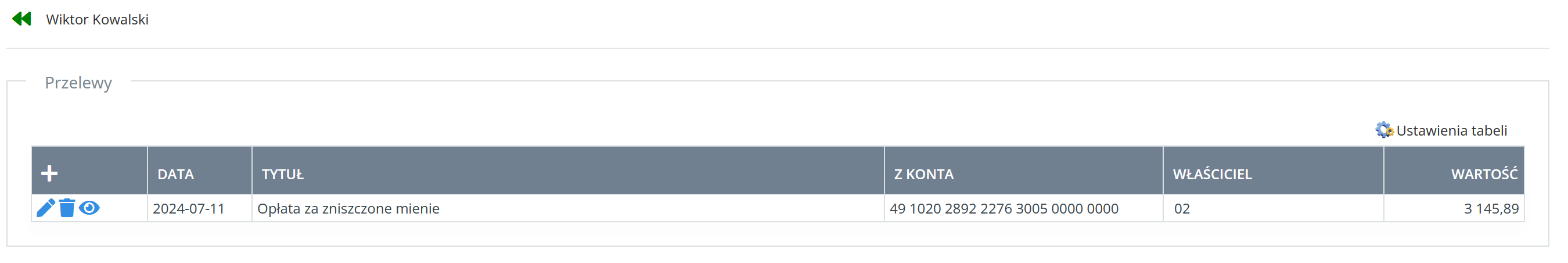 W tej zakładce mamy podgląd na przelewy powiązane z danym Właścicielem.