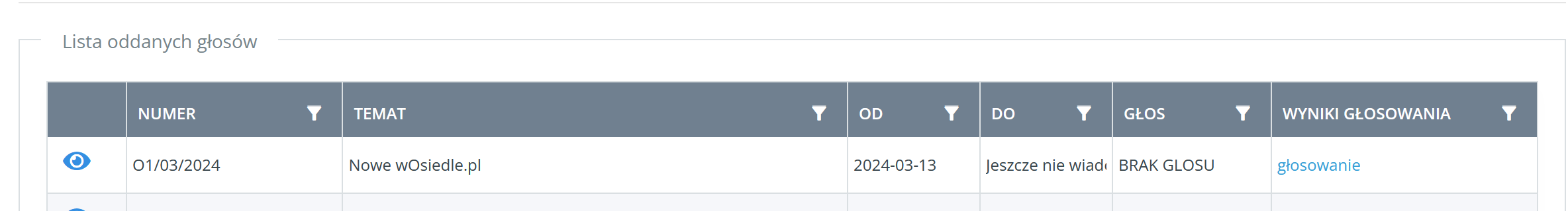 W tej zakładce mamy podgląd do wszystkich głosowań, w których brał udział dany Właściciel.