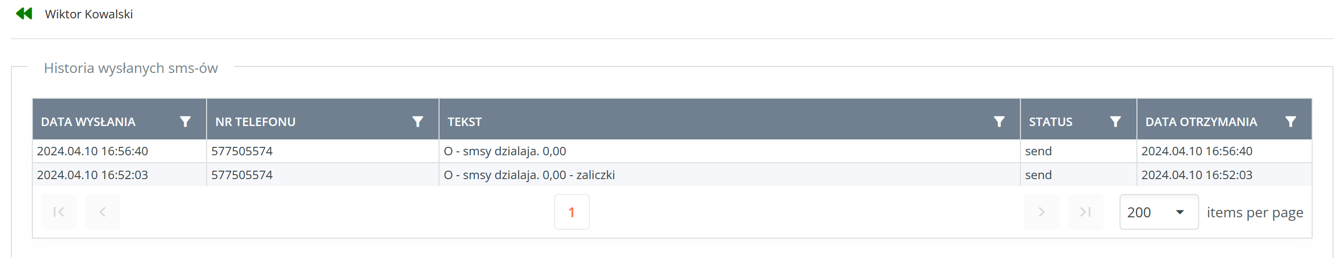 W tej zakładce mamy podgląd na wszystkie smsy, które są powiązane z danym Właścicielem.