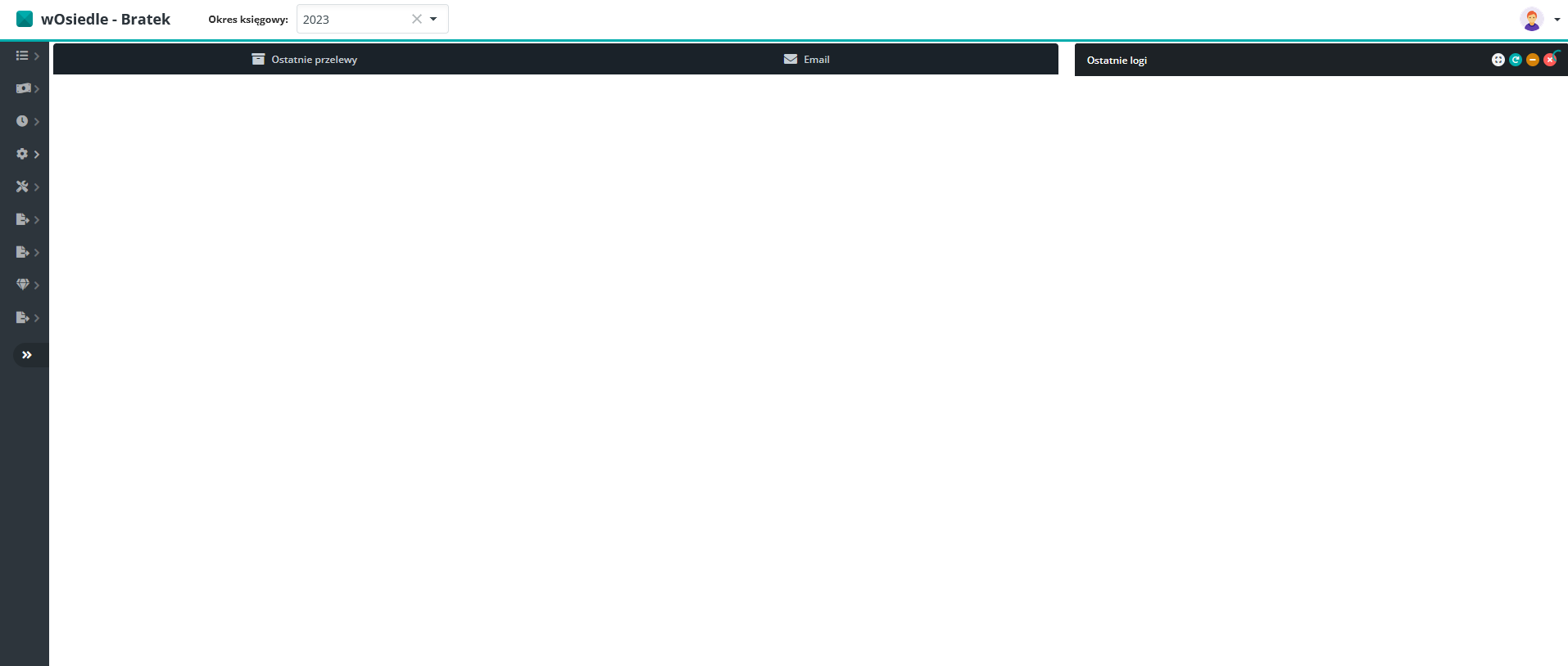 Ekran startowy to miejsce, z którego zaraz po zalogowaniu, zaczynamy naszą pracę w programie wOsiedle.pl.